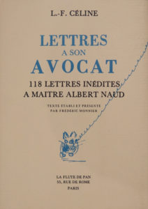 CÉLINE (Louis-Ferdinand) — Lettres à son avocat. 118 lettres inédites à maître Albert Naud. Texte établi et présenté par Frédéric Monnier.