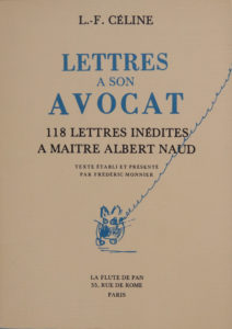 CÉLINE (Louis-Ferdinand) — Lettres à son avocat. 118 lettres inédites à maître Albert Naud. Texte établi et présenté par Frédéric Monnier.