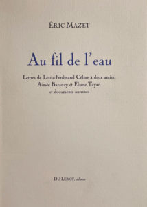 MAZET (Éric) — Au fil de l’eau. Lettres de Louis-Ferdinand Céline à deux amies, Aimée Barancy et Éliane Tayar