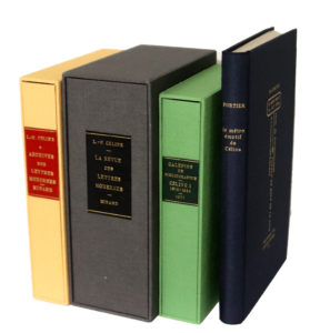 3) DAUPHIN (Jean-Pierre). Calepins de bibliographie. Céline I. (1914-1944). Paris, Lettres Modernes, Minard, 1977. In-12, broché. Cet essai de bibliographie des études en langue française consacrées à L.-F. Céline est le relevé annuel des livres, des études, des comptes-rendus, et, sans limitation, des différentes manifestations de la presse écrite. Il contient 1769 références (index des auteurs, des périodiques, et de l’iconographie). Cet ouvrage est une véritable ébauche de la future bibliographie de Dauphin et Fouché, publiée en 1985.