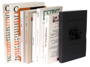 Ensemble de 9 ouvrages en 9 volumes in-8, brochés, réunis dans une boîte archives, à rabat, plastifiée bleu foncé.