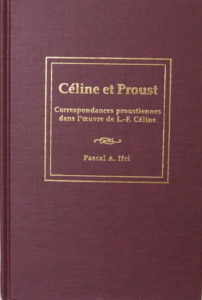 IFRI (Pascal A.). Céline et Proust. Correspondances proustiennes dans l’œuvre de L.-F. Céline. Birmingham, Alabama, US, Summa Publications INC, 1996. In-8, bradel toile lilas (Reliure de l’éditeur). Mise en parallèle des principaux traits et des grands thèmes des écrits de ces auteurs. Un travail des plus complets sur Proust et Céline : Genèse, conception et destinée de leurs ouvrages.