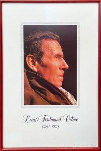 [AFFICHE] Louis-Ferdinand Céline. Georges Le Goullon. Janvier 1986. 41 x 57 cm, sous verre dans un encadrement chêne clair. Affiche réalisée d’après un portrait imaginaire de Céline par Georges Le Goullon, qui utilisa divers documents photographiques pour livrer sa vision de l’écrivain dans les années 1940. Tirage à 100 exemplaires, sur papier couché mat (32 gr.).