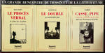 La Grande rencontre du dessin et de la littérature. Baudoin (Le Procès verbal, J.-M. Le Clézio). Götting (Le Double, Dostoïevski), Tardi (Casse-Pipe, suivi du Carnet du cuirassier Destouches, Céline)., mais d’un format différent : 34,5 x 47 cm, et d’un poids allégé (papier celloderme 25 gr.). Deux exemplaires.