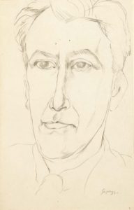 Grand portrait au crayon sur une feuille extraite d'un carnet à spirale (210 x 135 mm).