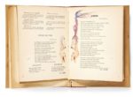 - Les pages 4 et 5, 11-12-13, 17, 20, 26-27 et 32-33 enluminées dans les marges de gouache, pastel et encre de Chine, par les peintres Tita, Vulliamy et Oscar Dominguez.