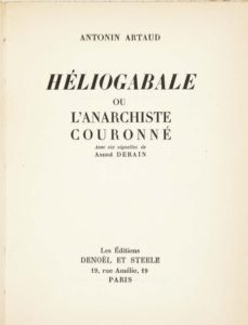 Antonin Artaud. Héliogabale ou l'Anarchiste couronné. Avec six vignettes de André Derain.