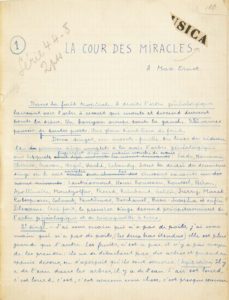 André BRETON, Robert DESNOS et Benjamin PÉRET. La Cour des miracles. [Comme il fait beau !]. Sans lieu ni date [décembre 1922- janvier 1923].