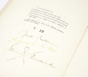 Un des 22 exemplaires sur hollande Van Gelder (nº 19), second papier après 8 chine, signés en trois couleurs par les auteurs.