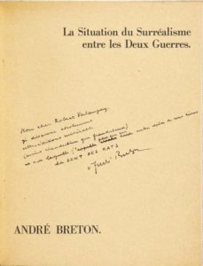Étonnant envoi soulignant le caractère non officiel de l'édition - que Breton n'a cependant pas hésité à offrir et dédicacer.