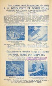 - Catalogue de nouveautés d'une maison d'édition religieuse vantant un texte de Michel Carrouges sur "Lourdes, terre des miracles".