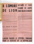 - La très rare affiche concernant l'affaire (in-plano, repliée en trois) ici en 4 exemplaires de 4 couleurs différentes, rouge, verte, bleue et jaune.