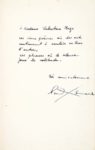 Envoi autographe signé : à Madame Valentine Hugo ces vieux poèmes où des mots continuent à vouloir en tuer d'autres, ces phrases où le silence joue la solitude, très amicalement