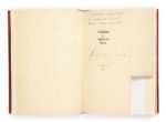 In-12 : veau rouge, dos lisse, nom de l'auteur et titre en lettres capitales de veau noir mosaïquées sur le premier plat, filet d'encadrement intérieur, doublures et gardes de daim rouge, tranches dorées sur témoins, à toutes marges, couverture conservée, en papier parcheminé, imprimée en rouge et noir, chemise, étui (Pierre-Lucien Martin, 1970).