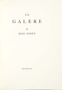 Jean GENET. La Galère. Paris, [Jacques Loyau, aux dépens de l'auteur], 1947.