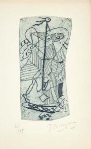 Un des 15 exemplaires de tête, hors commerce, sur papier de Rives B.F.K. (nº 6), les seuls enrichis d'une gravure originale à fond bleu de Georges Braque, justifiée et signée.