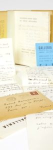 E.L.T.M Robert Benayoun a joint une lettre autographe de Mesens à lui adressée et deux invitations à des expositions de Mesens en Italie : à Milan à la Galleria del Naviglio en novembre 1960 (tract in-4 plié dans une enveloppe affranchie) et à Venise à la Galleria del