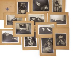 Album de 14 photographies originales montées sur des feuillets volants de carton fort : autoportraits et photographies de son mannequin.