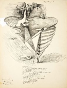 Superbe dessin original à l'encre de Chine exécuté en commun par Remedios Varo et Esteban