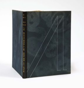 In-8 : demi-maroquin noir à la Bradel, dos lisse, plats de papier fort colorié au pochoir avec, sur le premier plat, deux L entrelacés à la peinture blanche figurant une sauterelle, entièrement non rogné, couverture et dos conservés (Mercher).
