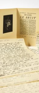 - Quand le bruit travaille, 2 pages sur un feuillet in-4 de papier quadrillé à l'encre avec corrections au crayon. Manuscrit signé.