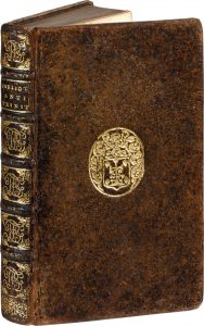 Édition originale de ce savant répertoire des auteurs et des écrits anti-trinitaristes et sociniens. Composé par Christoph Sand, il fut publié de manière posthume par Benedykt Wiszowaty, qui l'a fait suivre de diverses pièces en latin sur l'unitarisme polonais. Reliure aux armes et chiffre de Jérôme Bignon, maître de la Librairie de 1656 à 1684. Jérôme II Bignon (1627-1697) était le fils du conseiller d'État du même nom, dont il hérita des charges d'avocat général au Parlement de Paris et de maître de la bibliothèque royale. Un mors fendu, coins et coiffes usés.