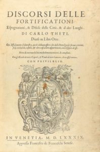 1589. LIVRE : (POLIORCÉTICA). THETI, CARLO : DISCORSI DELLE FORTIFICATIONI, Espugnationi, & …