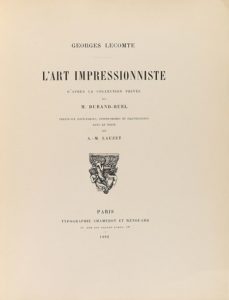 1892. LIVRE : (ART). LECOMTE, GEORGES : L'ART IMPRESSIONNISTE D'APRÈS LA COLLECTION PRIVÉE DE M. …