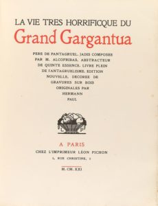 1921. LIVRE : (BIBLIOPHILIE). LA VIE TRES HORRIFICQUE DU GRAND GARGANTUA, PERE DE PANTAGRUEL. …
