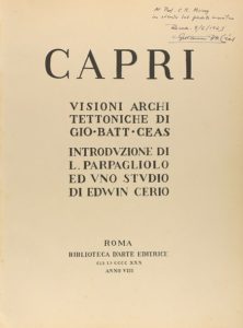 1930. LIVRE : (ART-BIBLIOPHILIE). BATTISTA CEAS, GIOVAN : CAPRI. Visions architettoniques de... …