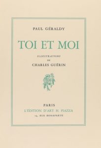 1932. LIVRE : (BIBLIOPHILIE). GÉRALDY, PAUL : TOI ET MOI. Paris : Ed. d'Art H. Piazza, 1932. 8º …