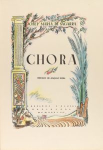 1938. LIVRE : (BIBLIOPHILIE). SAGARRA JOSEP MARIA DE : CHORA. Barcelone : Ed. l'Espiga, 1938. …