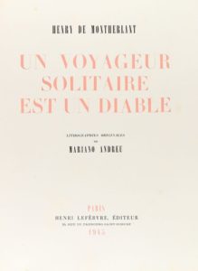 1945. LIVRE : (BIBLIOPHILIE). MONTHERLANT, HENRY DE : UN VOYAGEUR SOLITAIRE EST UN DIABLE. Paris : …