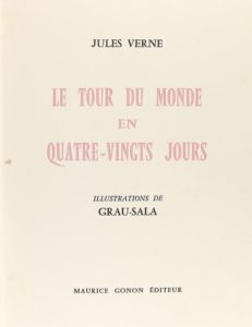 1968. LIVRE : (BIBLIOPHILIE). VERNE, JULES : LE TOUR DU MONDE EN QUATRE-VINGT JOURS. Paris : Libr. Hachette, 1968. 4º mineur. 191 p. + 2 h. Illustr. par Grau Sala hors texte. Enc. en cuir estampé, tranche supérieure dorée. Accompagné d'une suite d'illustrations. Edition de 3000 exemplaires. Traduit automatiquement par DeepL. Seule la version originale fait foi.