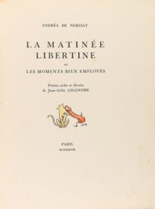 1928. LIVRE : (BIBLIOPHILIE-SICALYPTIQUE). NERCIAT, ANDRÉA DE : LA MATINÉE LIBERTINE OU LES …
