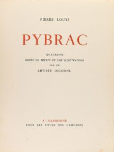 1930 ca. LIVRE : (BIBLIOPHILIE-SYCALYPTIQUE). LOUYS, PIERRE : PYBRAC. Narbonne : l'impression …