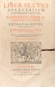 1613. LIVRE : (DROIT CANONIQUE). LIBER SEXTUS DECRETALIUM D. BONIFACII PAPAE VIII ; CLEMENTIS …