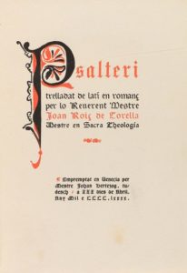 1927. LIVRE : (FAC-SIMILÉ-BIBLIOPHILIE). ROIÇ DE CORELLA, JOAN : PSALTERI TRELLADAT DE LATI EN …