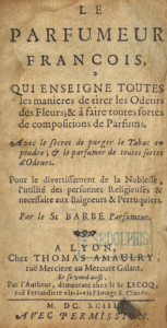 BARBE (Simon) — Le Parfumeur françois, qui enseigne toutes les manieres de tirer les odeurs des fleurs ; et à faire toutes sortes de compositions de parfums, avec le secret de purger le tabac en poudre ; et le parfum