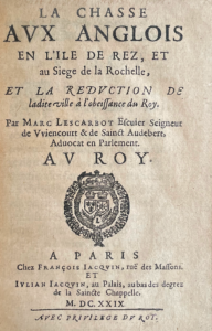 LESCARBOT (Marc) — La Chasse aux Anglois en l'ile de Rez, et au siege de La Rochelle, et la reduction de ladite ville à l'obeissance du roy.