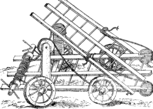 La belle et curieuse illustration gravée en taille-douce par ledit Hanzelet comprend un titre-frontispice et une centaine de figures de machines et de dispositifs militaires et pyrotechniques dans le texte.