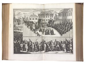 L'iconographie, remarquable, se compose de 9 planches hors texte, dont 3 à double page, gravées par Adriaan Schoonebeck.