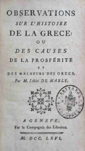MABLY (Gabriel de) — Observations sur l'histoire de la Grèce ; ou des causes de la prospérité et des malheurs des Grecs.