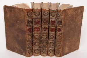 Ensemble 5 volumes in-12, veau moucheté, dos orné (Reliure de l'époque).