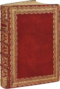 dentelle dorée formée de deux roulettes ondées, dos orné, coupes décorées, roulette intérieure dorée, tranches dorées (Reliure de l'époque).