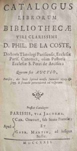 [CATALOGUE LA COSTE]. MARTIN (Gabriel) — Catalogus librorum bibliothecæ viri clarissimi D. Phil. de La Coste. Paris, [Pierre Simon pour]