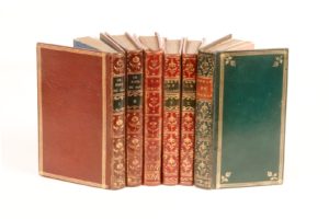 [BERNIS (Cardinal de)]. Œuvres complètes. Londres [Paris, Cazin], 1777. 2 volumes in-18, maroquin rouge, triple filet doré, dos lisse orné, dentelle intérieure, tranches dorées (Reliure de l’époque). « Charmant frontispice par Marillier, gravé par Delaunay ». Cohen, 138.