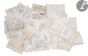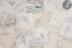 Collection de 79 dessins au crayon légendés, sur papier, diverses dimensions.