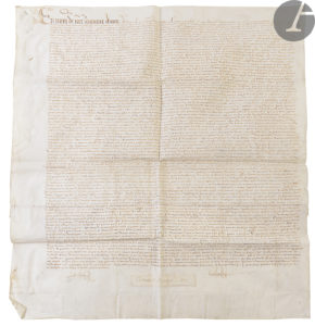 En français, acte sur parchemin (étiquette avec date de 1540 erronée contrecollée au bas de l’acte)