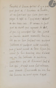 Copie manuscrite très lisible réalisée par trois personnes au début du XX siècle, de l’essai du peintre et critique Roger de Piles (1635-1709). Ce dialogue prend place dans une dispute qui faisait rage au moment de la première édition de ce texte (1673), et que l’on a appelé la « querelle du coloris ». Elle opposait les partisans de Rubens et ceux de Poussin afin de déterminer ce qui primait dans la peinture, du dessin ou du coloris. Roger de Piles pour sa part en tenait pour Rubens et la primauté de la couleur. En 1699, date de la seconde édition de ce texte, l’élection de Piles à l’Académie royale de Peinture et de Sculpture mit fin à la querelle et entérina la victoire des Rubénistes.